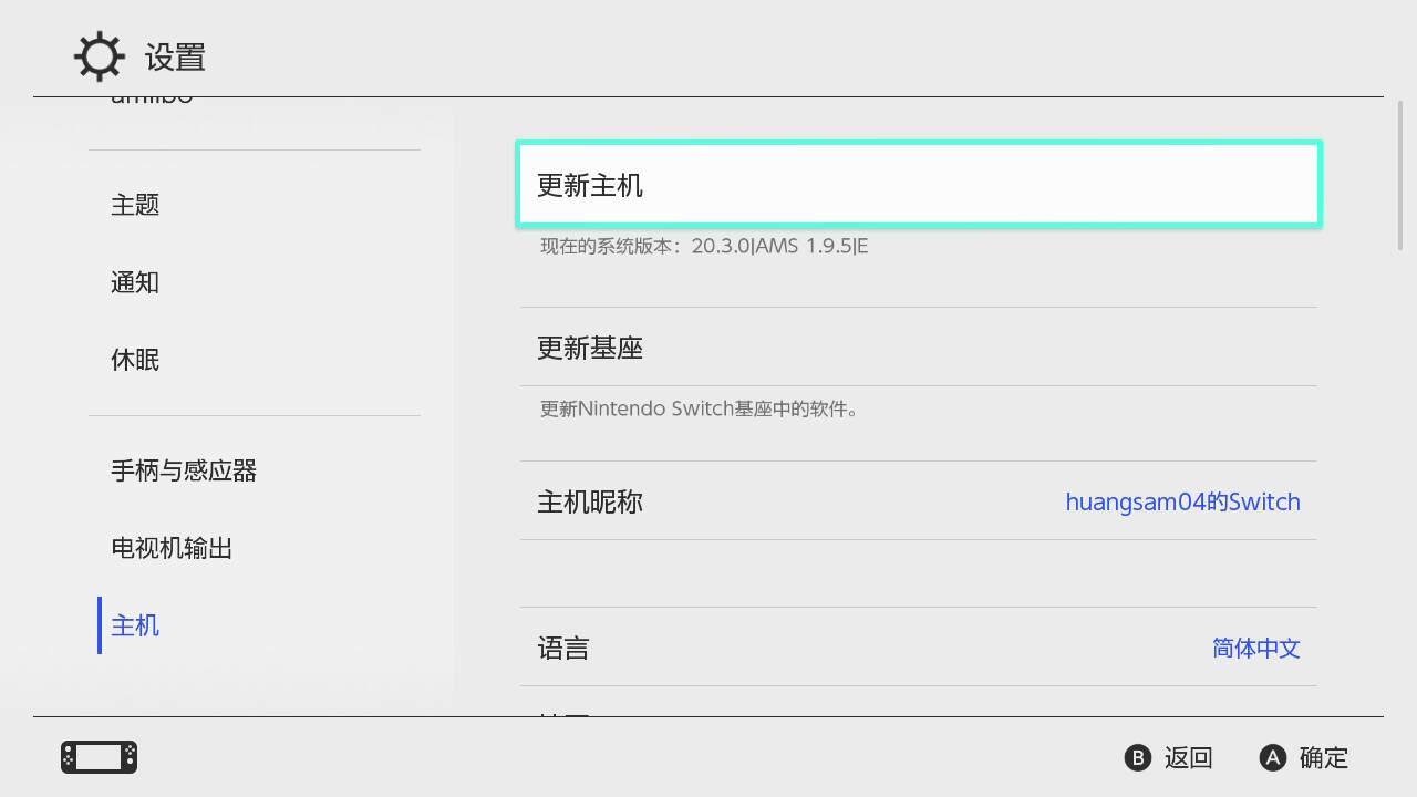 NS 设置页面 - 主机。